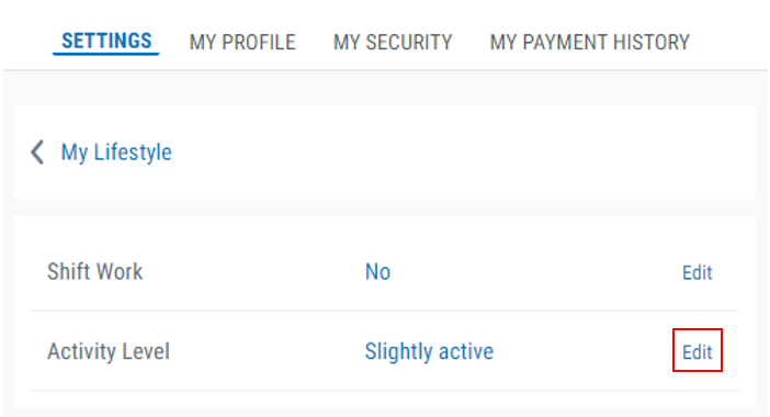 6. Select Sedentary, Slightly Active, or Active based on your health goal