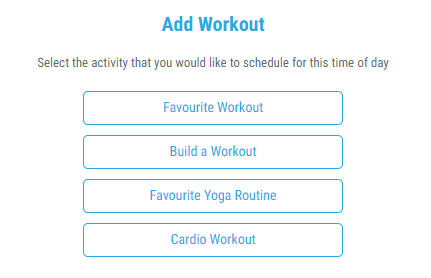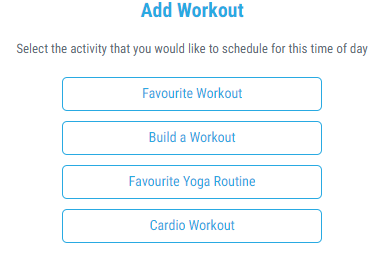 3. Select cardio workout and select the Cardio option you would like to add to your Fitness Schedule