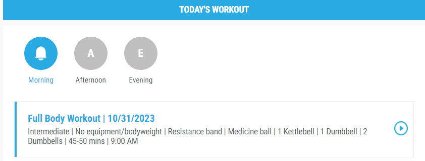 2. Select the Play icon next to the workout